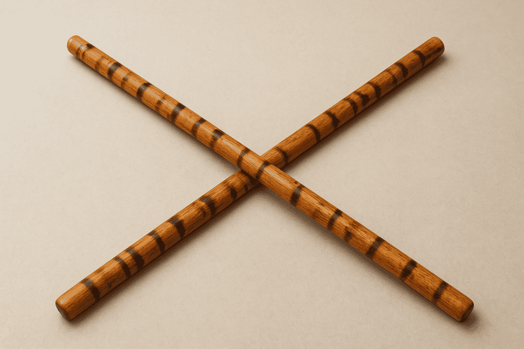 - kije rattanowe (zwykle para, długości ok. 70 cm)